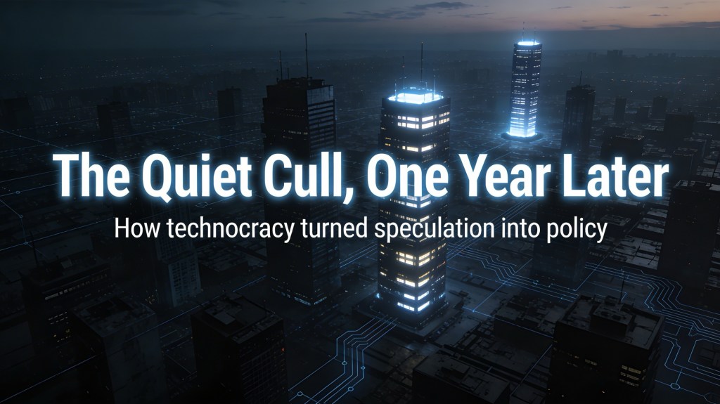 A year later, the pattern is clearer: the quiet cull is being coded into benefits systems, digital ID schemes, AI fraud tools, and private “innovation zones” that decide who keeps stability and who gets quietly discarded.