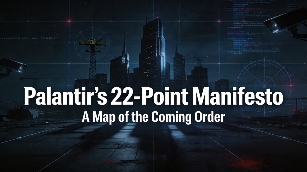 Palantir’s 22 points should be read in that light. This is not a curiosity. It is not just a loud corporate statement. It is a flare from inside the system. A signal that sectors of the ruling structure are becoming more direct about what they want: a future with fewer illusions, harsher terms, stronger instruments, and a population made ready to accept all of it.